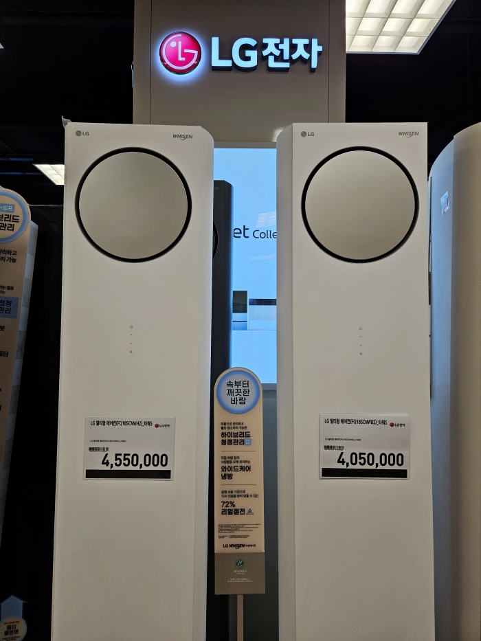 우선 휘센 오브제 컬렉션 타워가 있습니다. 이는 인테리어를 신경쓰시는 분들에게 대단히 인기가 있는 라인인데 따라서 가격이 조금 높은 편입니다. 종류도 1등급, 프리미엄, 스페셜, 타워 등으로 나뉘어 있고 색상도 크림 색상화 화이트 톤으로 나뉘어 있어 집안의 분위기에 맞게 선택할 수 있습니다.