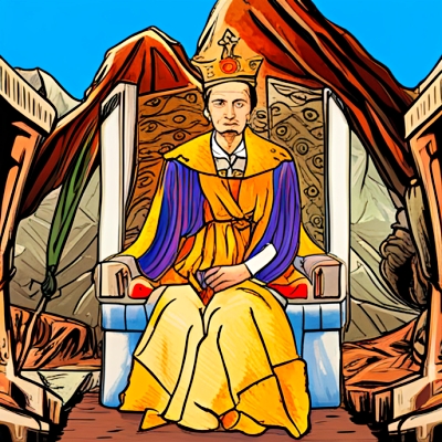 뒤로 보이는 사는 메말라 보입니다. 황제가 잊고 있는 갑옷은 딱딱하게 그려져 있습니다. 그의 표정도 무서워 보입니다.